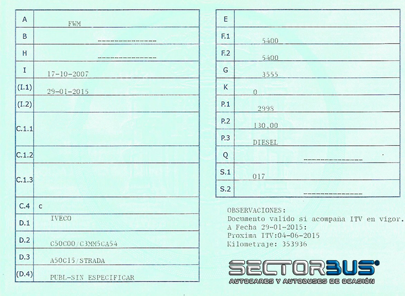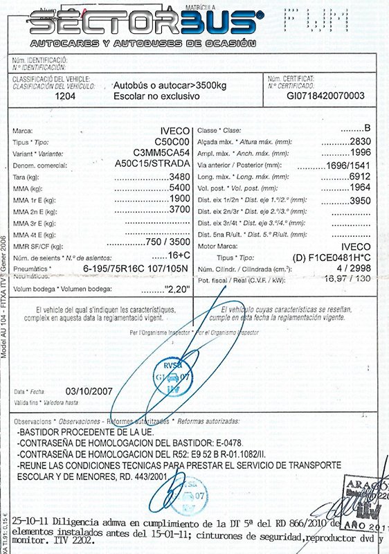 Iveco Daily Strada de 16 pax.+C año 2007 caducado de escolar, excelente mantenimiento