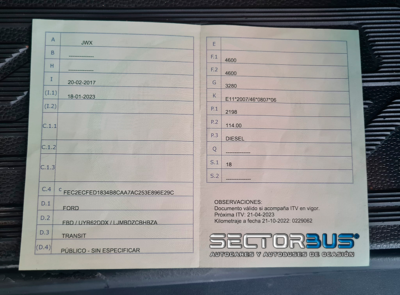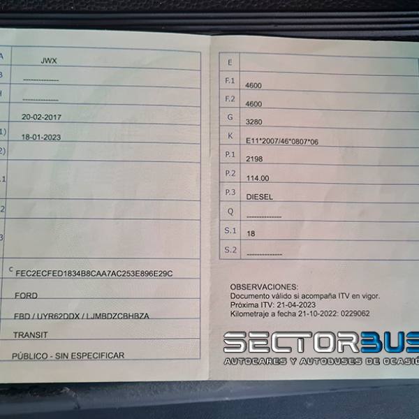Minibús FORD TRANSIT 17 Plazas+Conductor Segunda Mano año 2017